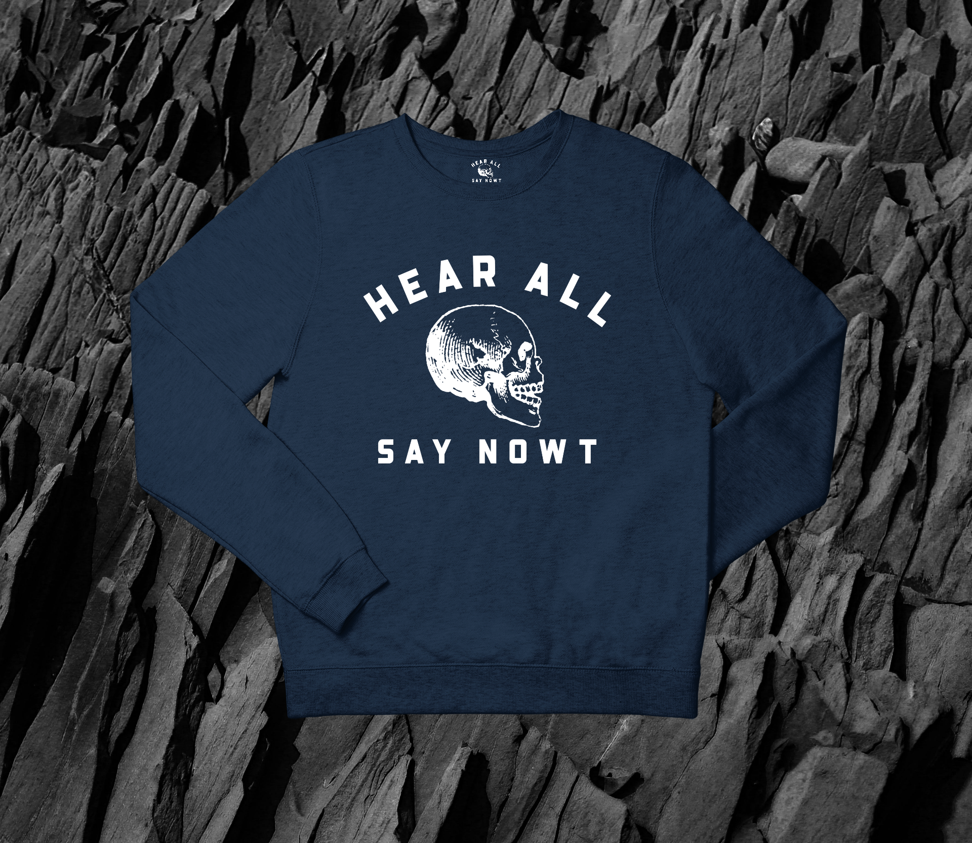 'HEAR ALL SAY NOWT SKULL' Sweatshirt - Navy Blue