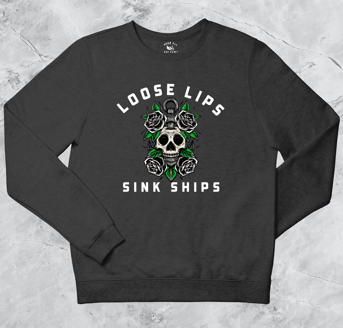 'LOOSE LIPS SINK SHIPS' Sweatshirt - Dark Grey
